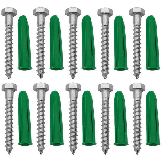 10 X Coach Screws Galvanized (65mm x 8mm) plus 10 X Wall Plugs combo.