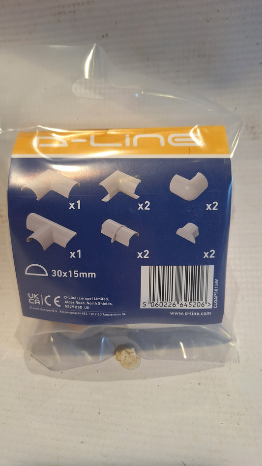 d-line Trunking Accessories pack: For 30mm x 15mm half round trunking, white: Bends, Ends and Adapters. (Copy) (Copy) (Copy)