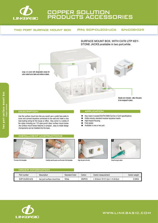 Linkbasic Cat6 Double Surface Mount Box. (Termination)