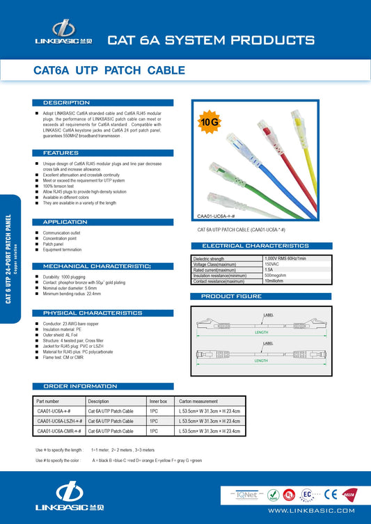 Linkbasic 2 Meter UTP Cat6a Flylead, Patch Cable.
