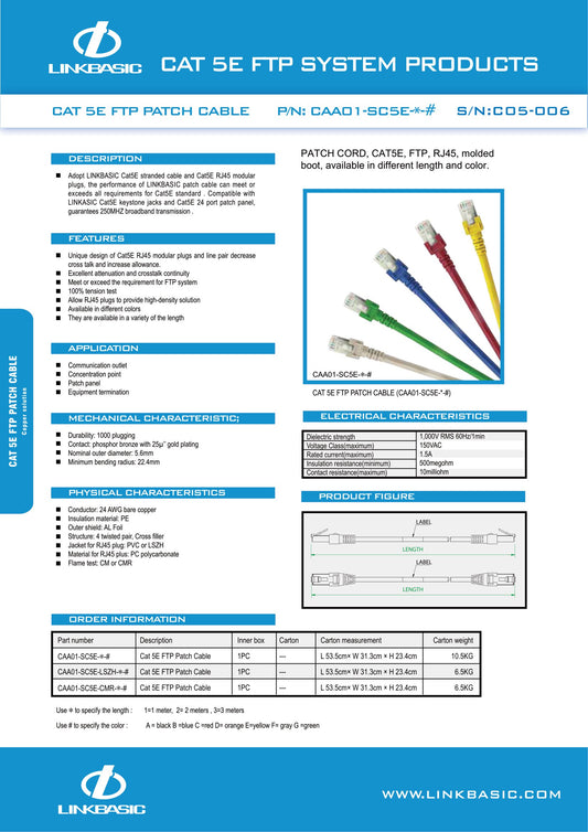 Linkbasic 1 Meter FTP Cat5e Flylead, Patch Cable