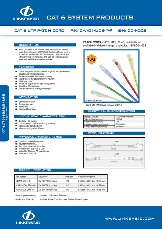 Linkbasic 10 Meter UTP Cat6 Flylead, Patch Cable.