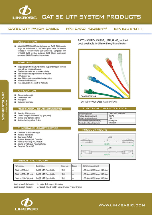 Linkbasic 5 Meter UTP Cat5e Flylead, Patch Cable.