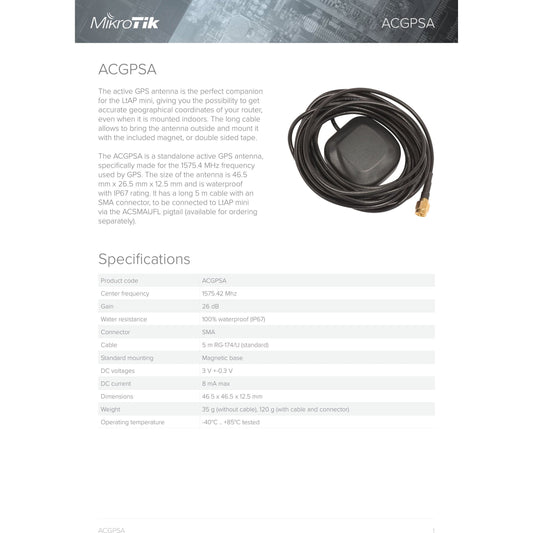 MikroTik Active GPS antenna for LtAP mini LTE Kit | ACGPSA