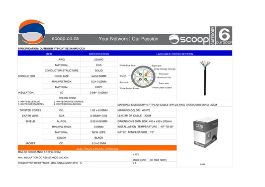 Scoop 305m Box CAT6 Outdoor FTP CCA Cable