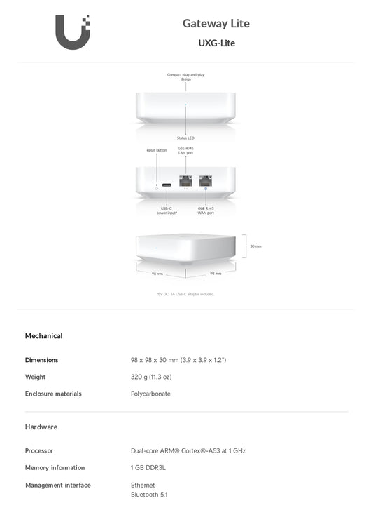 Ubiquiti UniFi Next-Generation Security Gateway Lite | UXG-LITE
