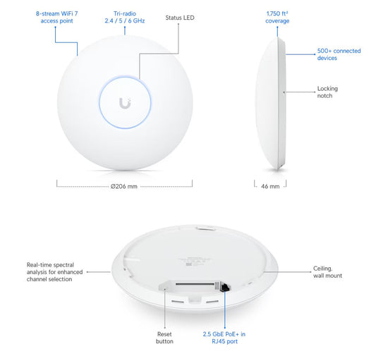 Ubiquiti UniFi WiFi 7 Pro Max Tri-Band AP | U7-Pro-Max
