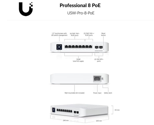 Ubiquiti UniFi Switch Pro 8 Port 6PoE+ 2PoE++ 120W | USW-Pro-8-PoE (120W)